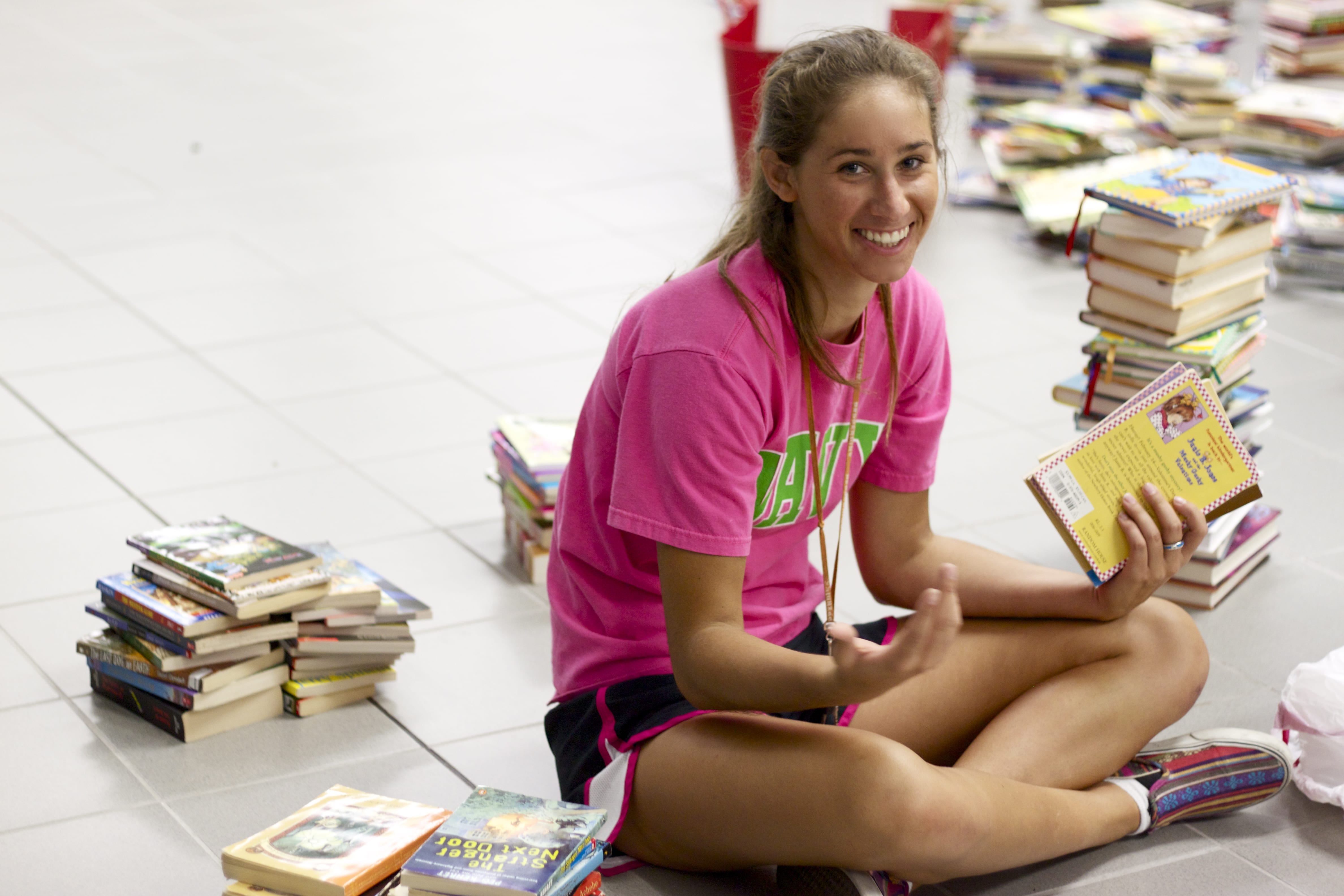 Students and adults volunteered to organize the books and set up the rooms.