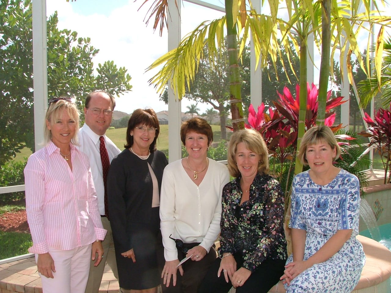 L-R: Founder Karen D. Clawson, Bring a Book, Bring a Friend Fun’raiser ; Charles Frontz, Principal; JoAnne Grieco, Assistant Principal; Bonnie Winfield, Peggy Avalos, and Lori Myers, Media Specialist at the second annual Bring a Book, Bring a Friend Fun’raiser 2004-05 benefiting the library at Laurel Oak Elementary. The event was co-hosted by Jeannie Barry and Leslie Palumberi at the Barry home in Saturnia Lakes and raised $4,000 in books and money to purchase new books.