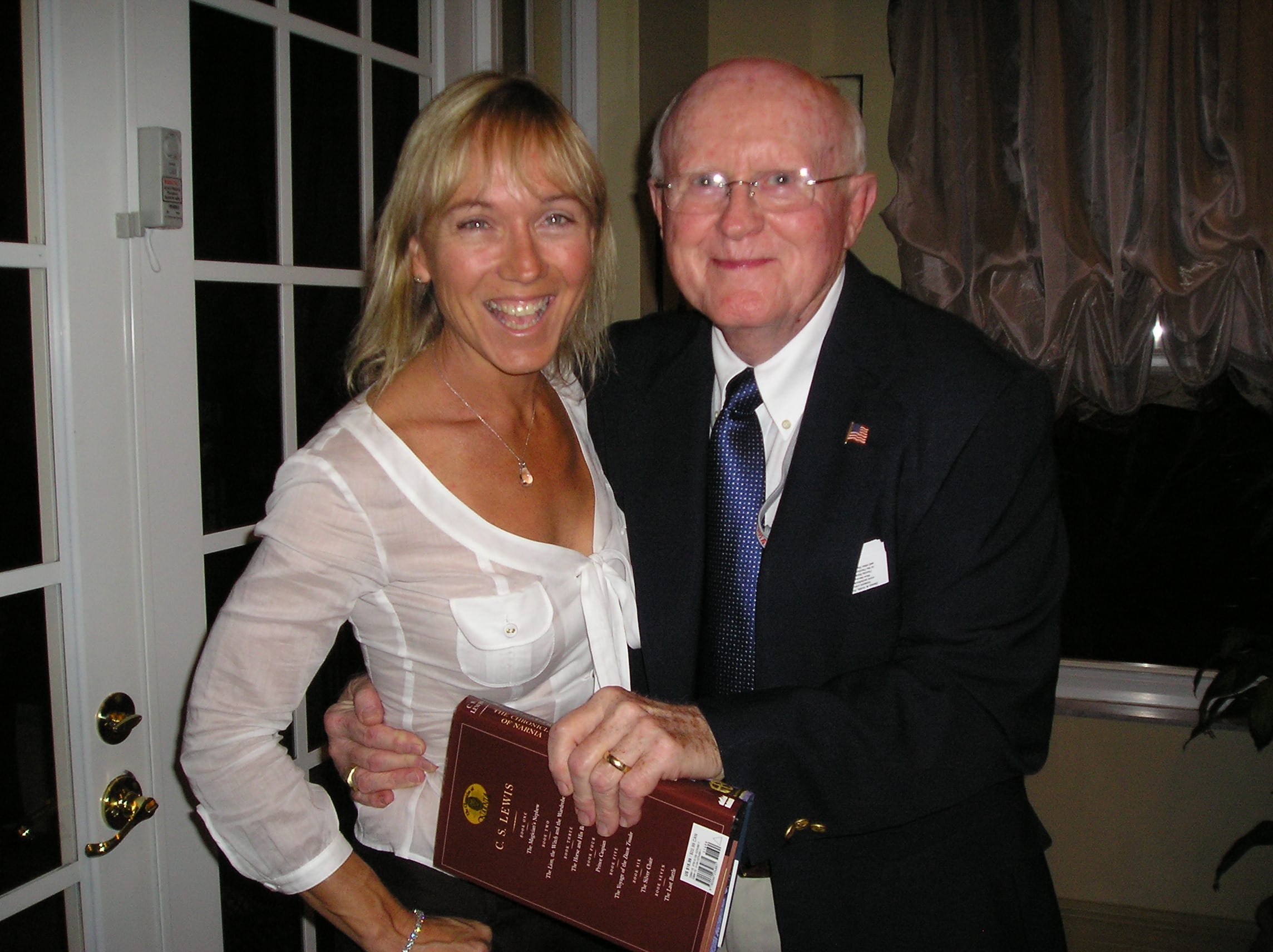 Photo by Kathleen Smalley. “Cloisters of Canterbury” author, Robert Dean “Bob” Bair hams it up with Karen D. Clawson, Founder of the Bring a Book, Bring a Friend Fun’raiser.