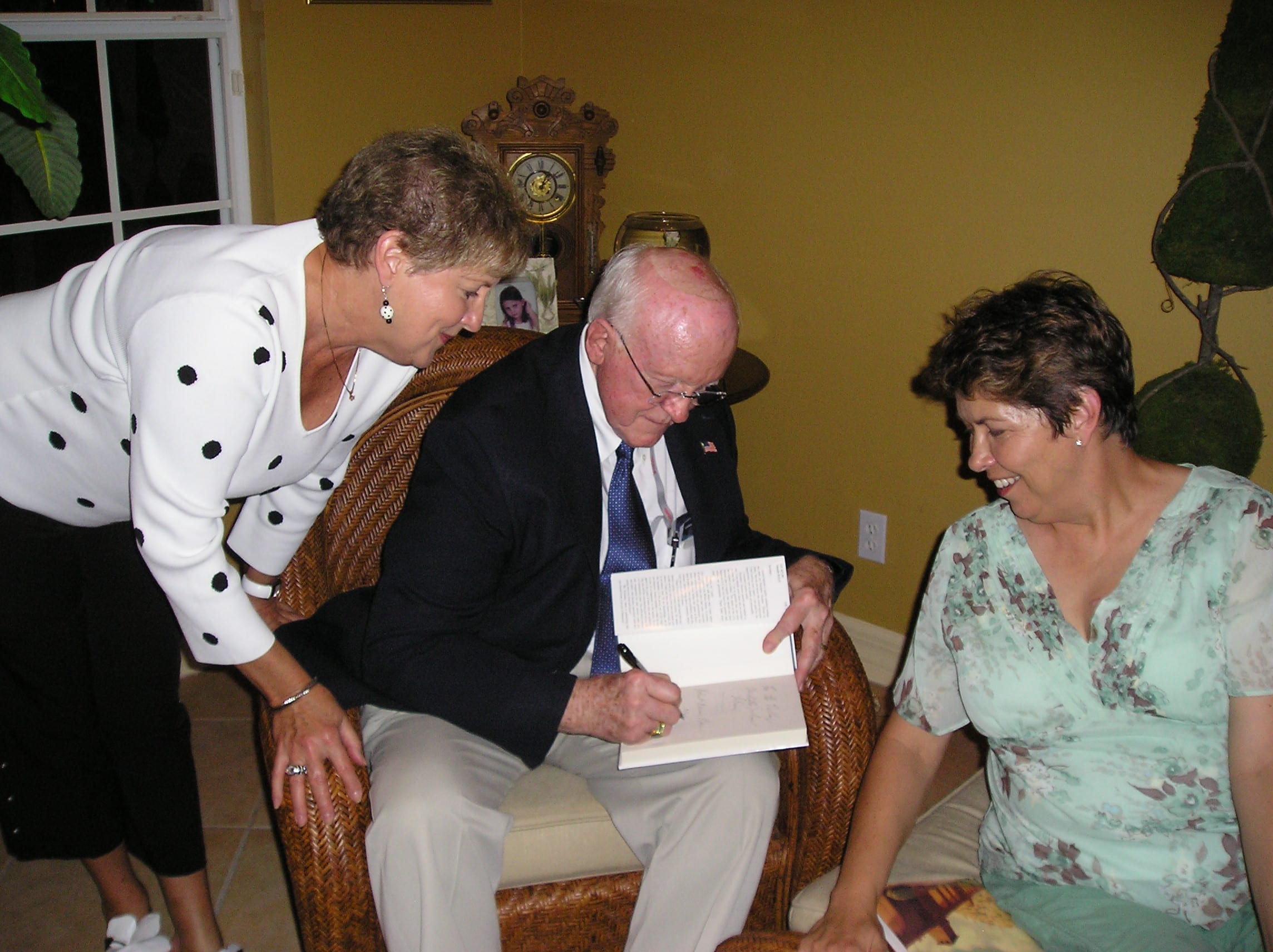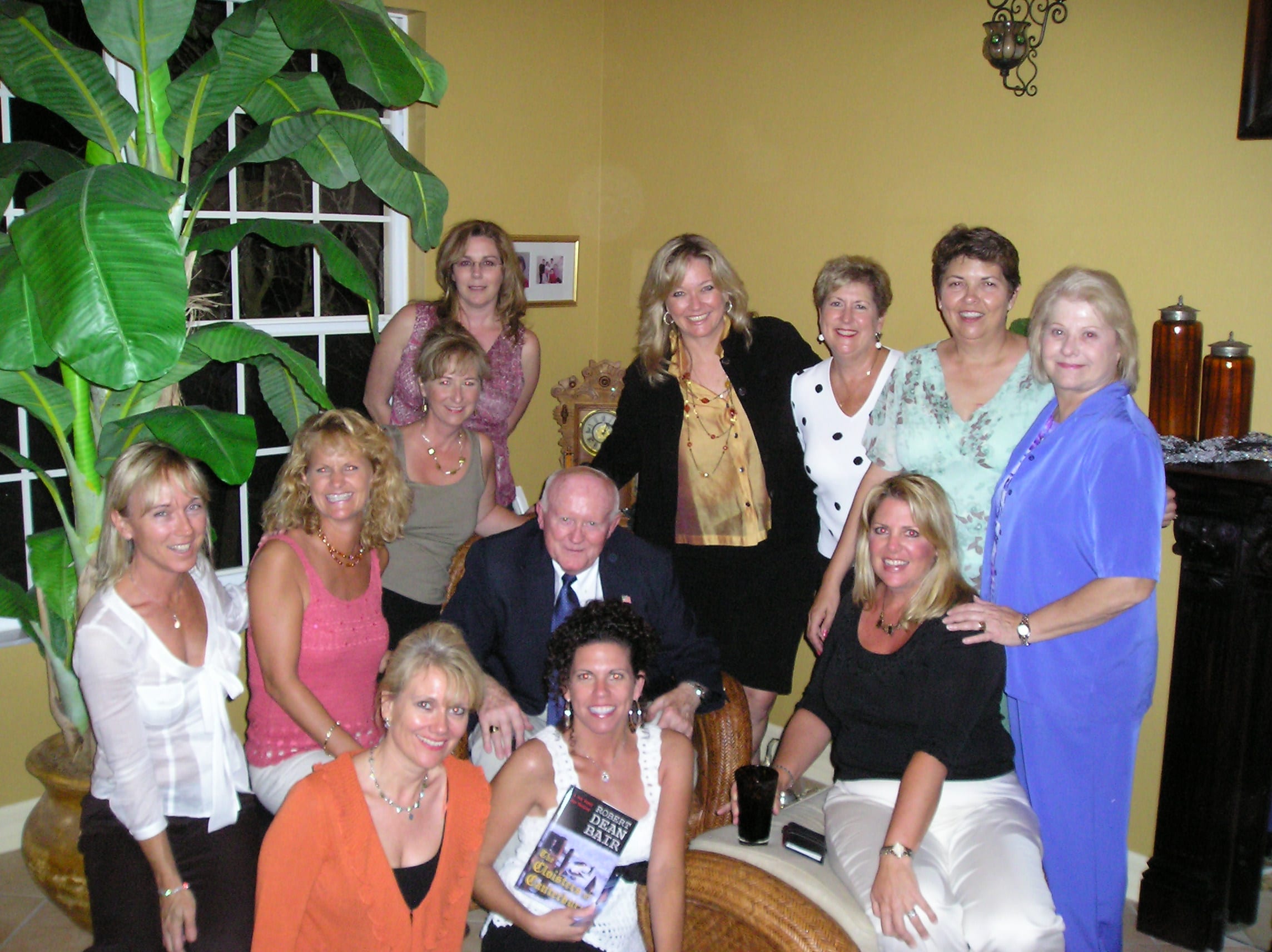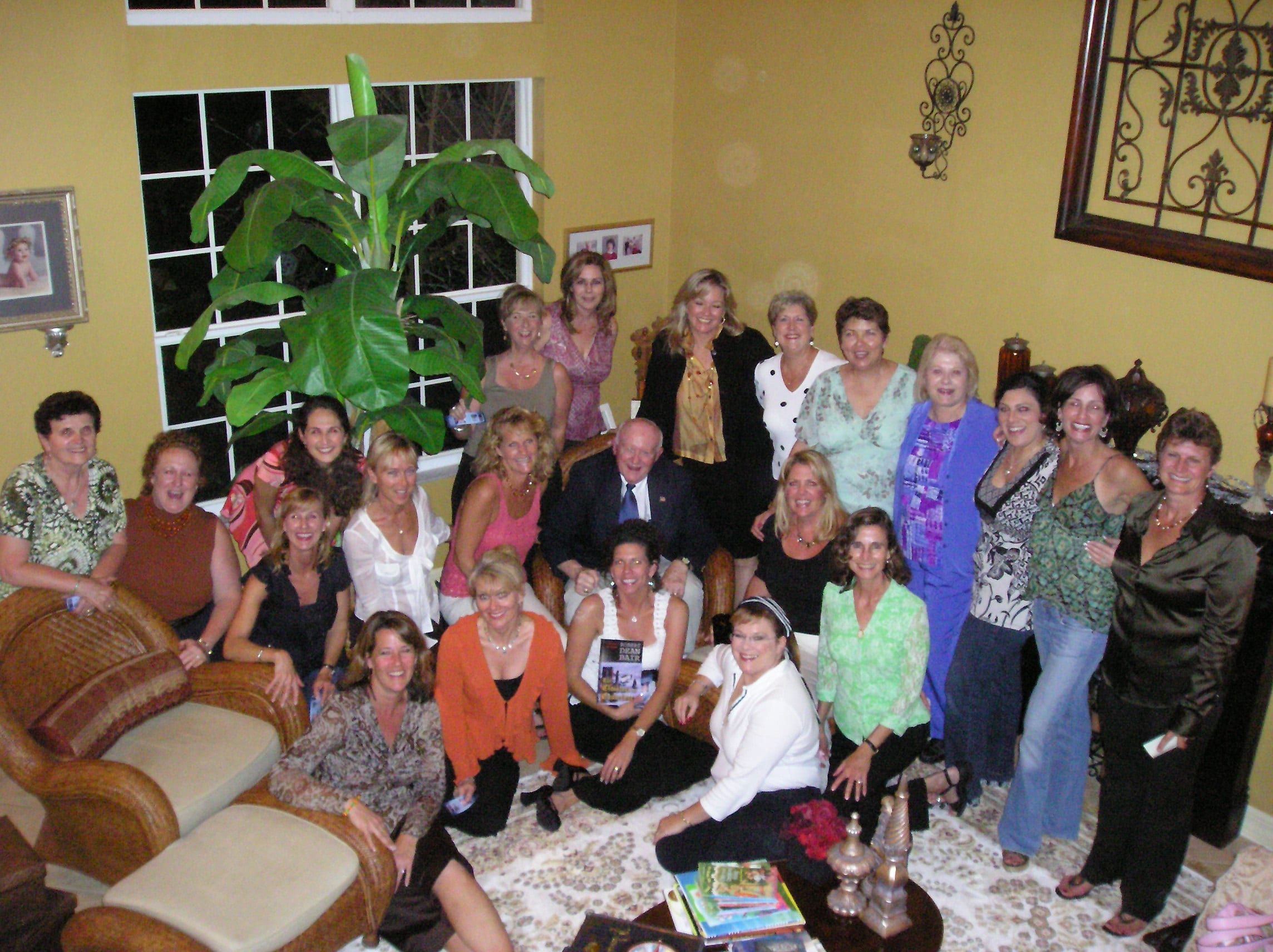Photo by Kathleen Smalley. The 5th Bring a Book, Bring a Friend Fun’raiser was hosted by Leslie Palumberi to benefit the students and library at The Village School in Naples, Florida. Guest author, Bob Bair is surrounded by mothers and teachers.