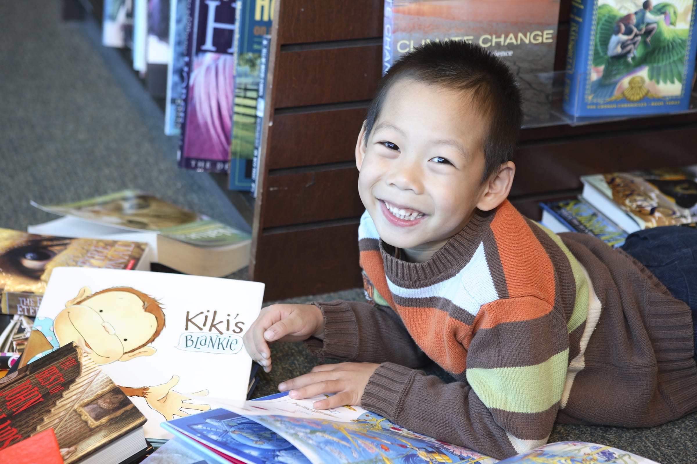 Photo by Karen Walsh Haupt. A young boy poses for the picture that will accompany his story in K is for Kids’ Young Authors book. “Kids Celebrate Reading” Book Fair at Barnes & Noble Booksellers at the Waterside Shops in Naples.