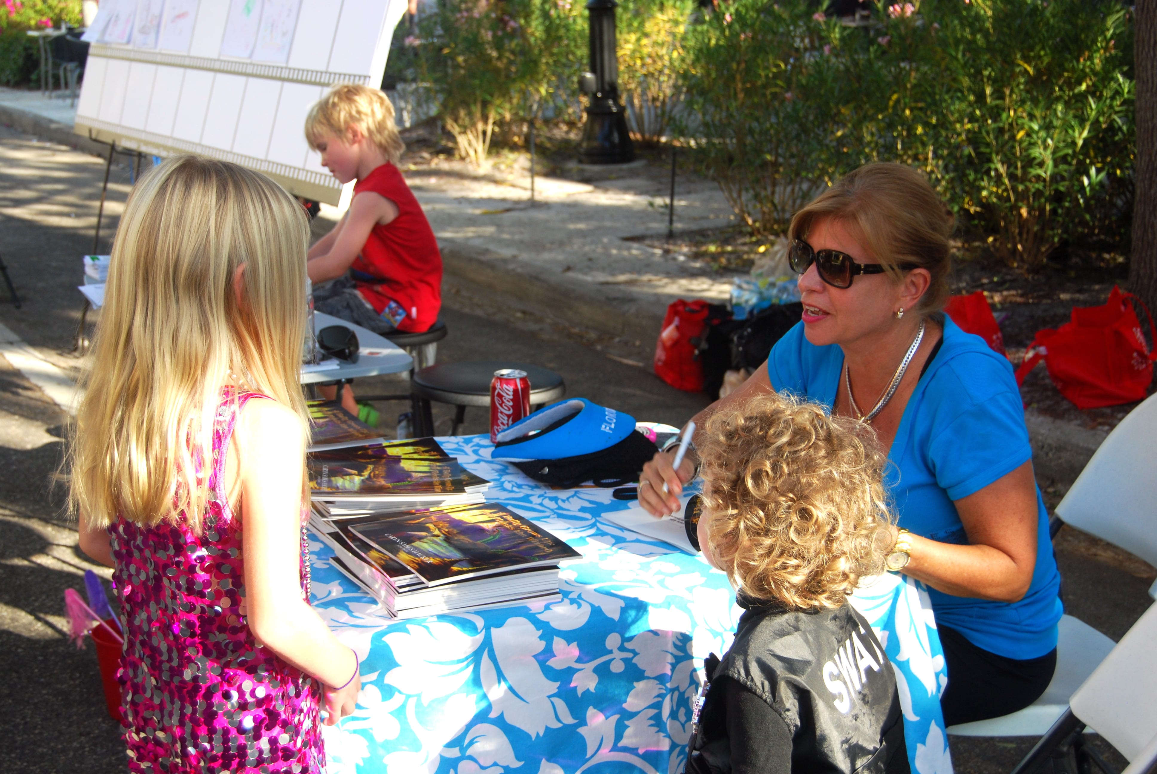 Children’s book author, Caryn Sabes Hackel signs “A Bully Grows Up: Erik Meets the Dragon” for young participants.