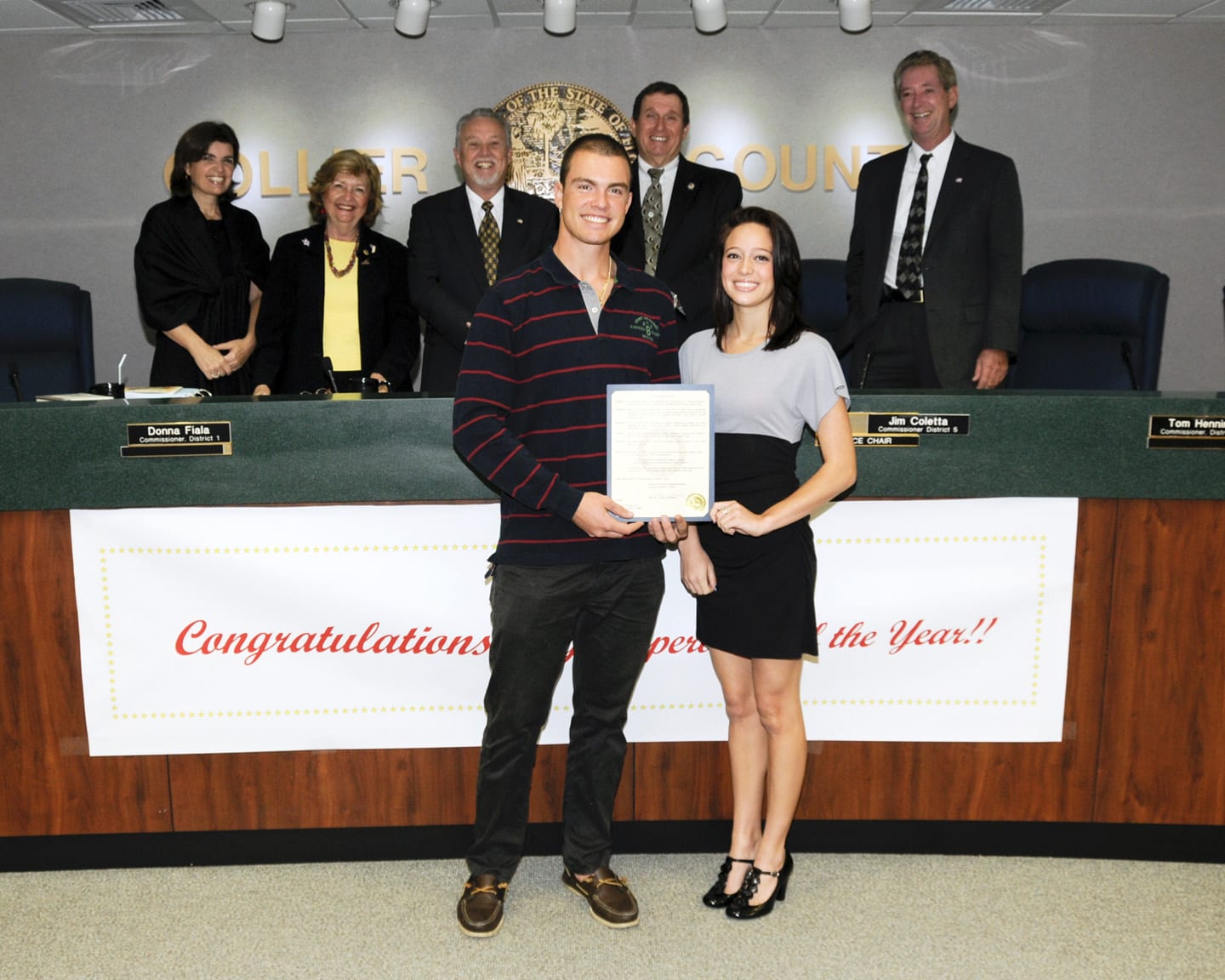 4th Annual Bring a Book, Bring a Friend for Children’s Literacy Month proclamation by the Collier County Commissioners with students George Hiller from Barron Collier High and Danielle Verducci from Naples High.