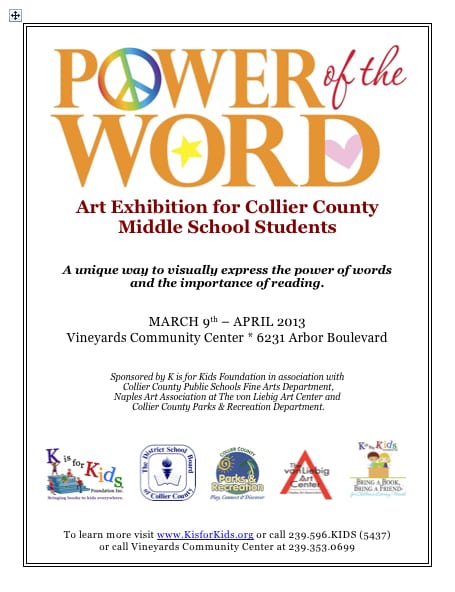 Power of the Word Traveling Art Exhibition, a unique opportunity for middle school students to visually express the power of words.