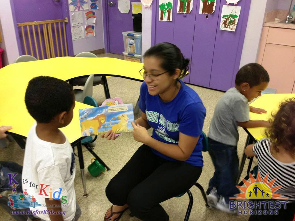 Books are given by FGCU students to children at Brightest Horizons (now Gladiolus Learning Center) in Ft. Myers…